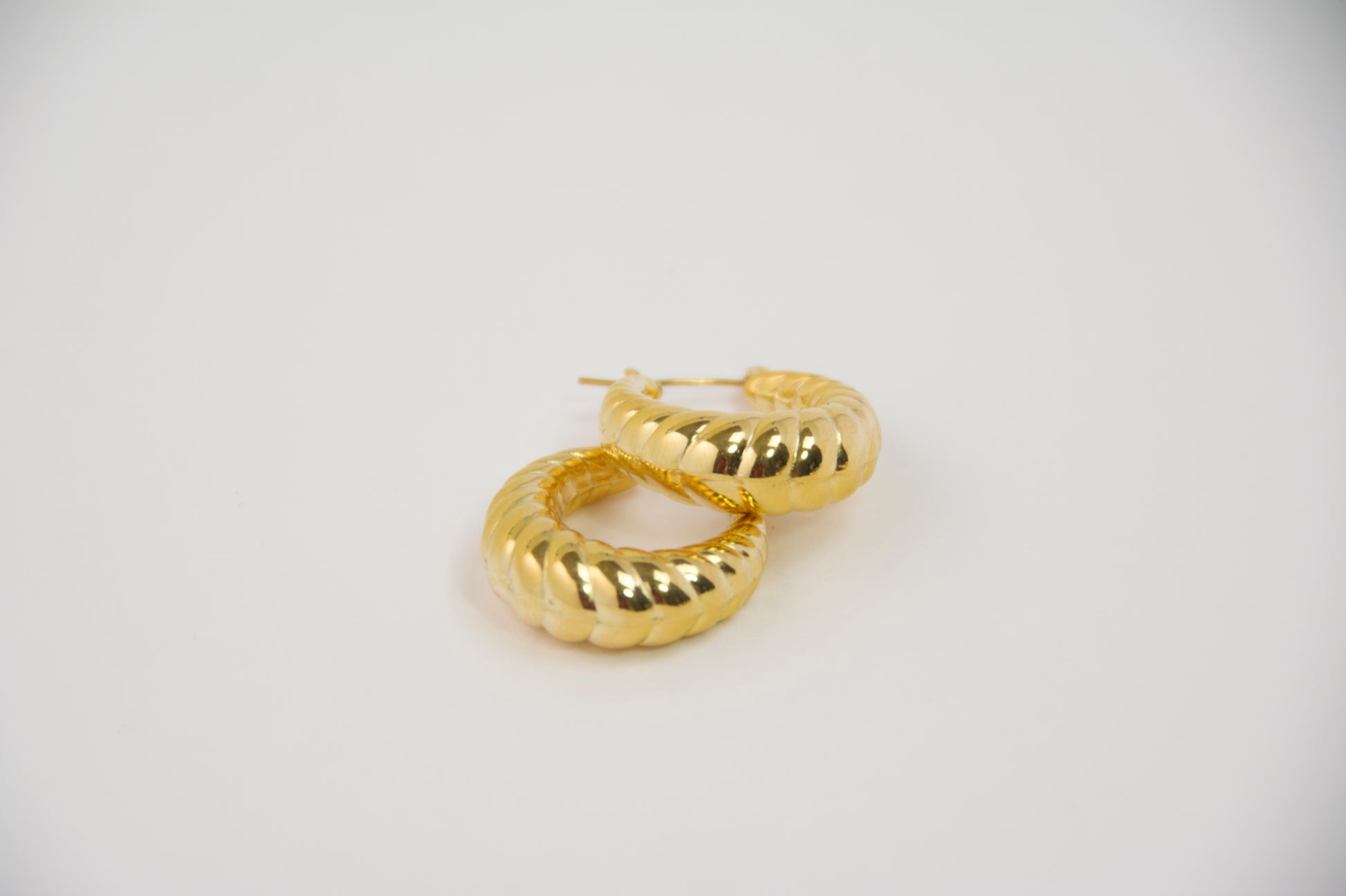 These croissant earrings feature a timeless silhouette. Chunky at the bottom while tapering upwards like an actual croissant.