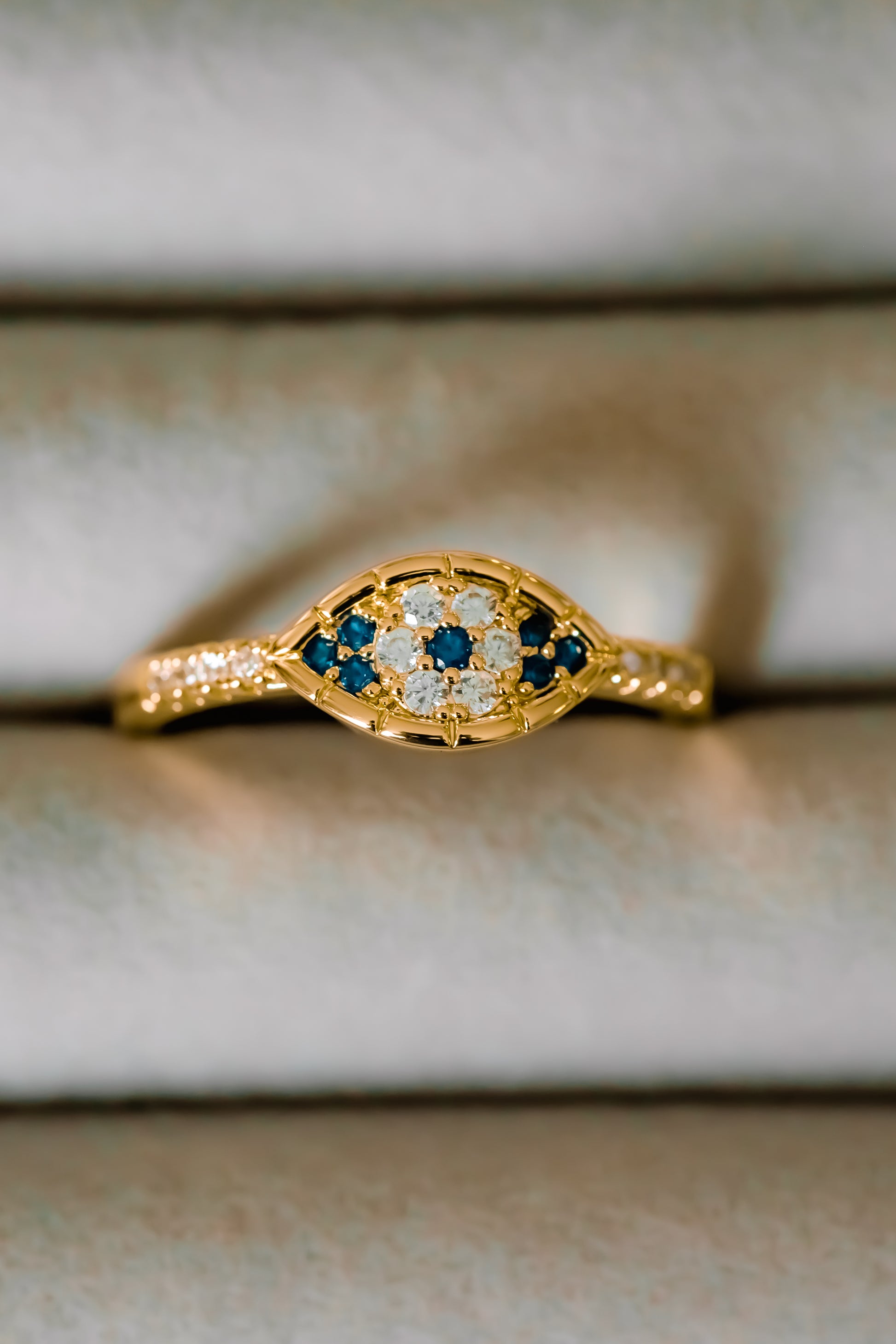 Introducing the Iris Ring, featuring stunning evil eye detailing that adds a touch of elegance and protection to your ensemble. Crafted with 18k gold plating, its soft yellow tone exudes a sense of luxury and good luck. Elevate your style with this exclusive piece.