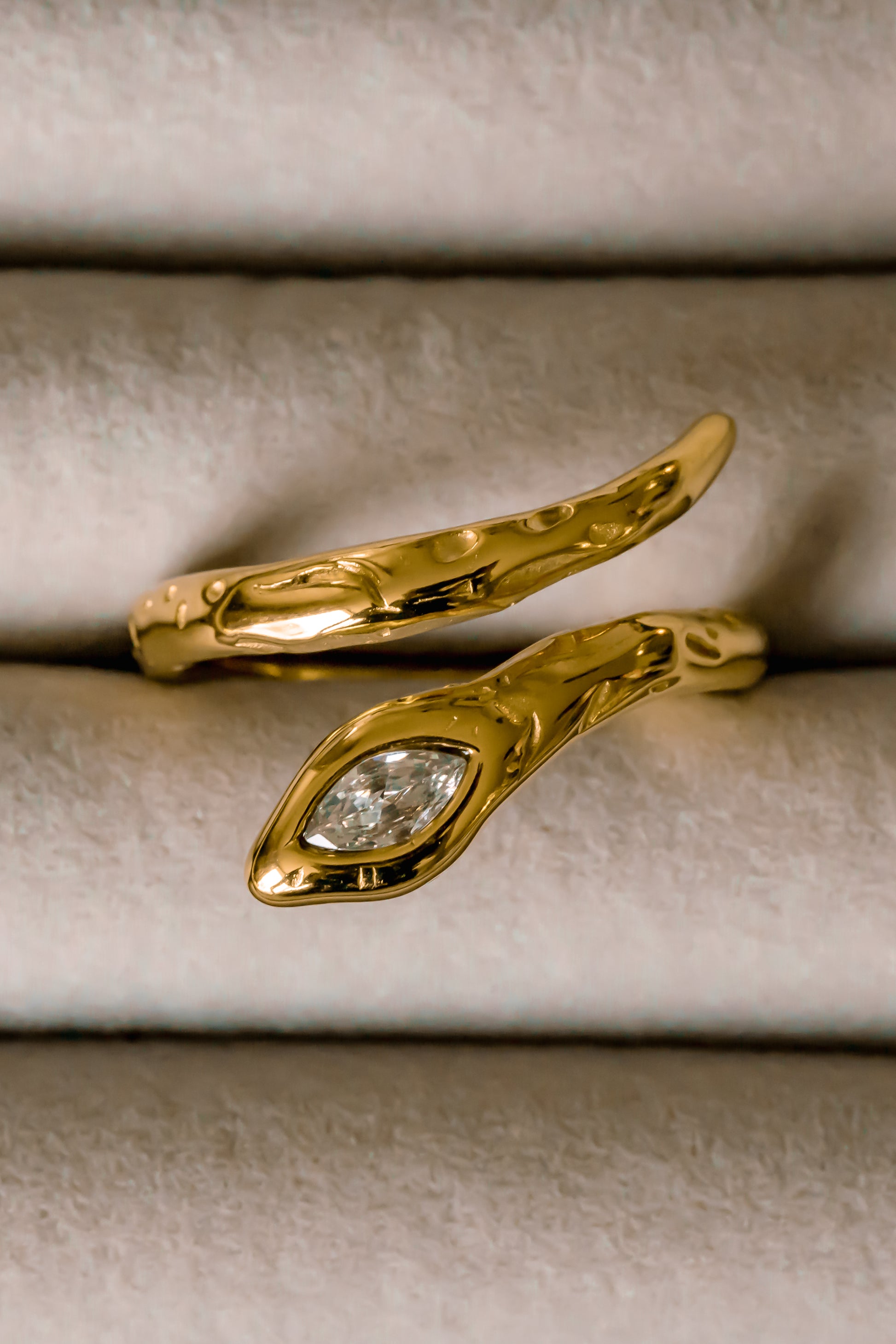 Indulge in luxury with the Medusa Ring Lucent. Its stunning white zircon stone, crafted with titanium steel and finished with 18k gold plating, radiates elegance. The one size fits all design adds convenience to its already exclusive appeal.